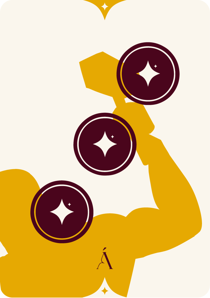 Cuando el palo de Oros domina una lectura, el mensaje está enfocado en el plano material y práctico de tu vida. Trabajo, dinero, estabilidad, salud o lo que construyes con tus manos y tu tiempo. La tirada te pide mirar con atención lo concreto, lo tangible, lo que puedes tocar y cambiar.
