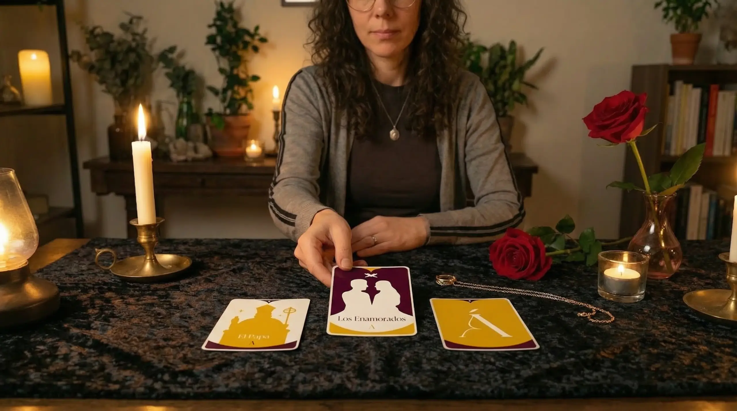 Lo que el tarot hace en el amor no es predecir. Es iluminar ángulos que desde dentro de la situación son difíciles de ver. Cuando estás emocionalmente involucrada, la perspectiva se estrecha. Las cartas la amplían.